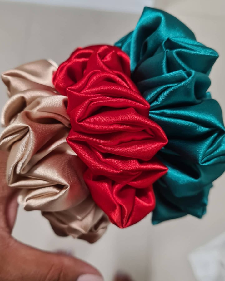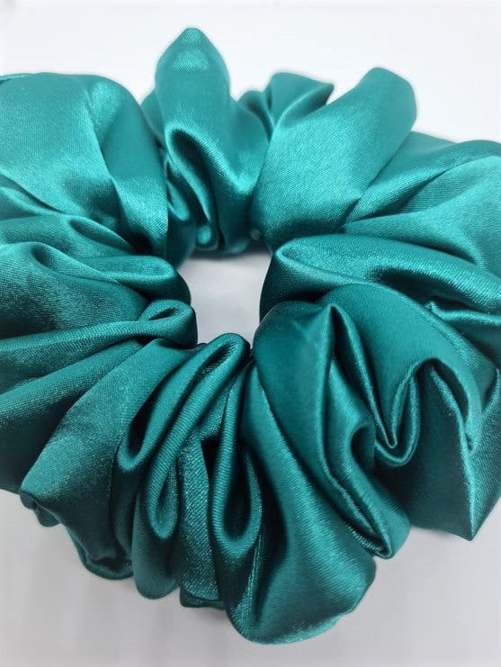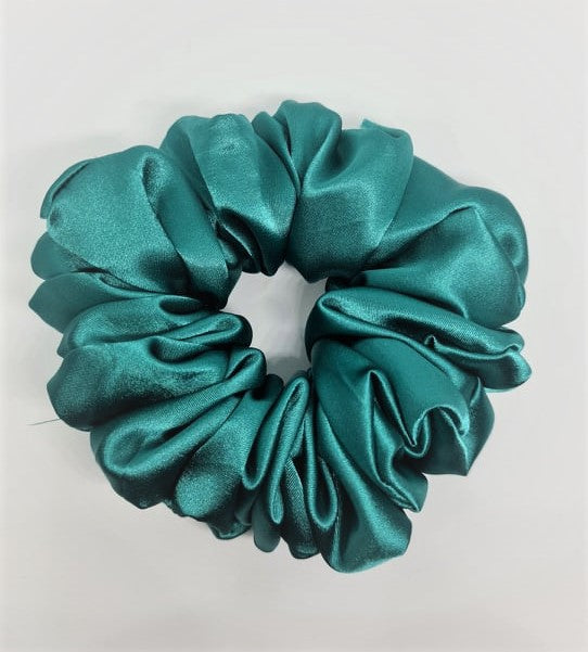 KIM is a soft satin Emerald Green coloured scrunchie. Available in both medium and XL sizes.