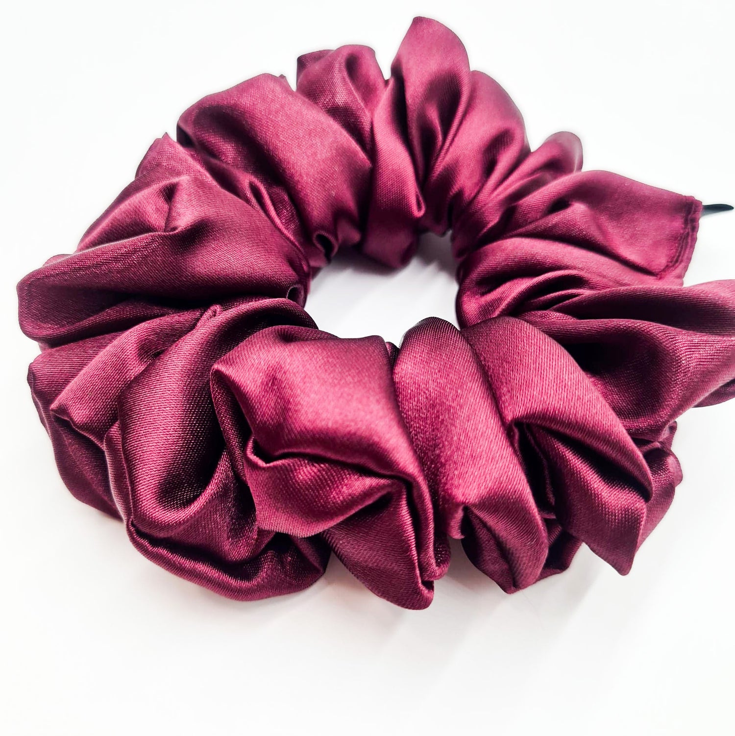 KORA is our Burgundy satin scrunchy and is available in WM Scrunchies three sizes of XL, Medium and Mini.